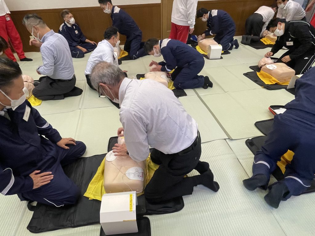 当日は、日本赤十字社埼玉県支部様とさいたま赤十字病院様より指導員をお招きし、緊急時に命を守るために必要な行動を、座学での講習や実際にAEDや蘇生訓練用人形を使用しながら学びました。最後に筆記と実技での試験を行い、参加者20名全員が赤十字ベーシックライフサポーター認定証を取得しました。